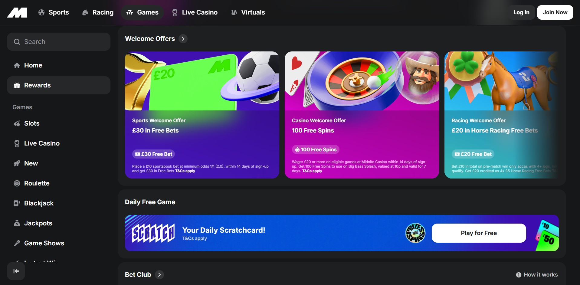 Midnite makes a strong first impression with a clean, modern design that feels fresh without being overcomplicated. Navigation is intuitive, letting players switch between the casino, sports section, and promotions without hunting through menus. The platform feels especially well suited to mobile users, where responsiveness and smooth transitions make gameplay effortless.